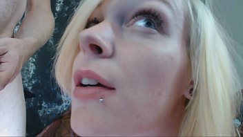 Blonda te priveste in ochi cand suge pula si inghite sloboz