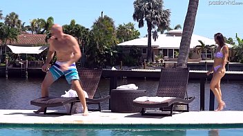 Fata model fierbinte se masturbeaza si excita barbat la piscina